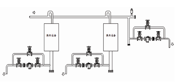群组疏水是指多台设备共用一个疏水阀进行疏水,把多台设备的冷凝水先汇集到同一根管道后,安装一个疏水阀进行疏水。